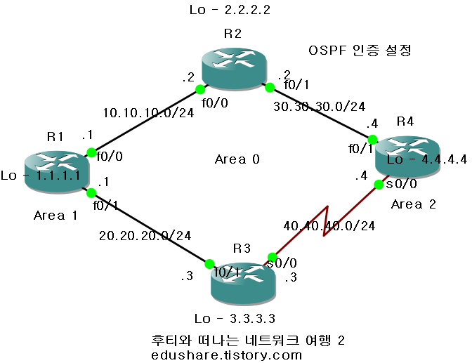 에어리어 인증은 동일 에어리에에 속한 라우터에서 설정하면 됩니다.