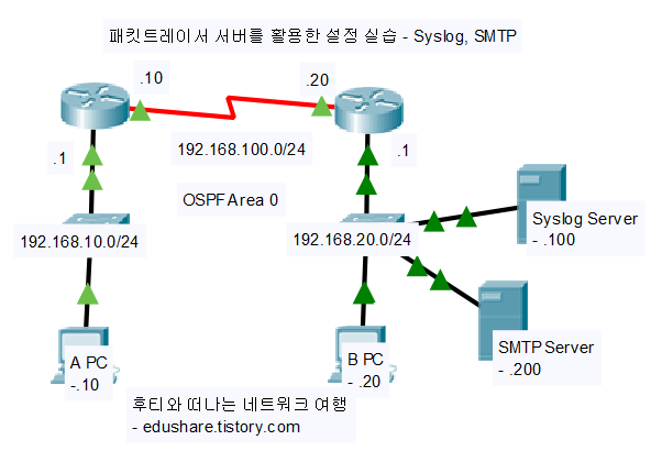 이전 글의 서버 설정 실습에 이어 패킷트레이서에서 서버시스템으로 간단하게 구축이 가능한 Syslog, E-Mail 서버 설정에 대해 알아보겠습니다.